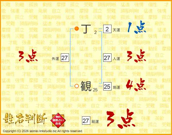 丁観さんの総運は27画の3点