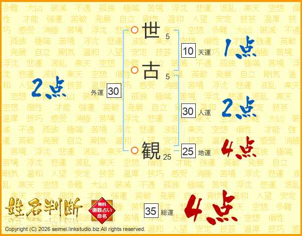 世古観さんの総運は35画の4点!