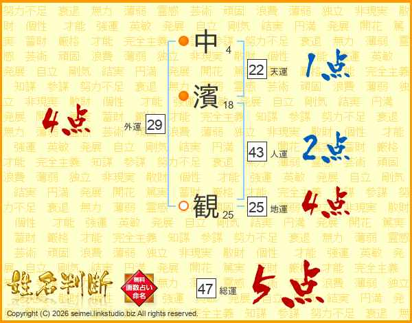 中濱観さんの総運は47画の5点!