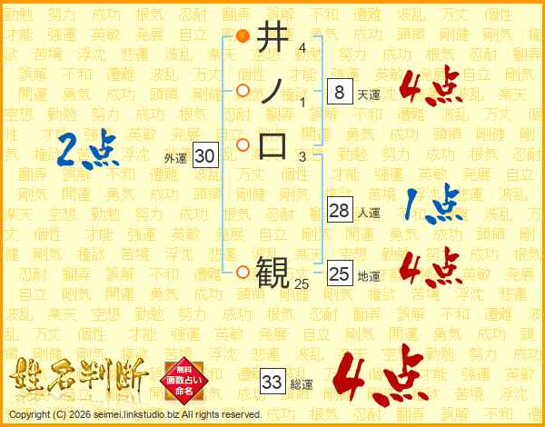 井ノ口観さんの総運は33画の4点!