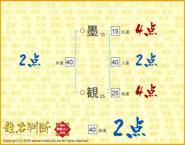 墨観さんの総運は40画の2点!