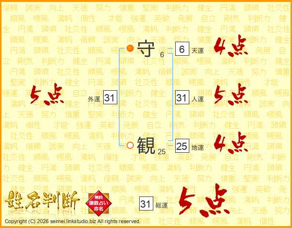 守観さんの総運は31画の5点!