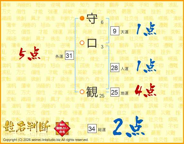 守口観さんの総運は34画の2点!