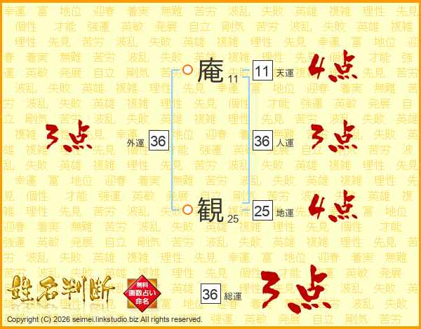 庵観さんの総運は36画の3点