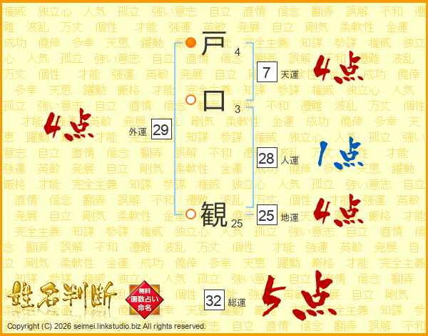 戸口観さんの総運は32画の5点!