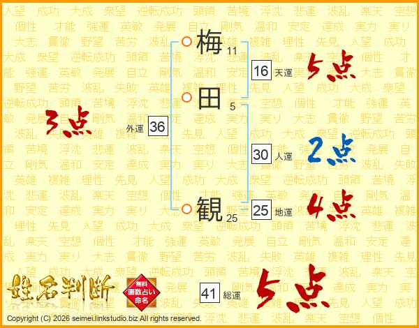 梅田観さんの総運は41画の5点!