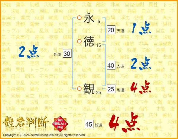 永徳観さんの総運は45画の4点!