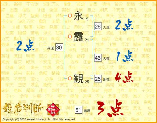 永露観さんの天運は26画の2点!