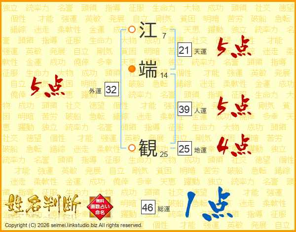 江端観さんの総運は46画の1点!