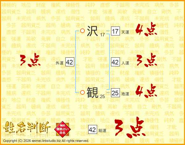 沢(17画) 観(25画)