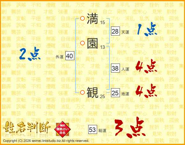 満園観さんの総運は53画の3点!