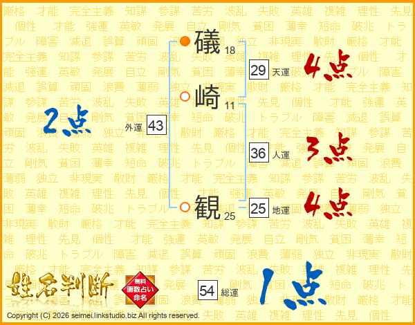 礒崎観さんの地運は25画の4点!
