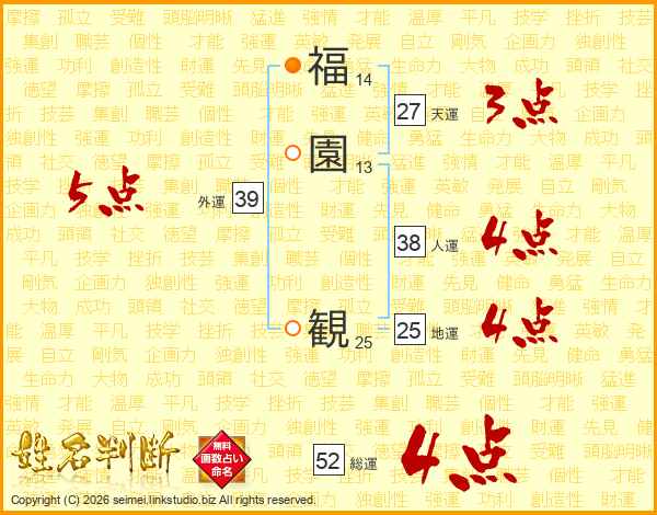 福園観さんの総運は52画の4点!