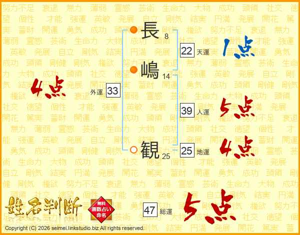 長(8画)嶋(14画) 観(25画)