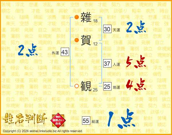 雜賀観さんの地運は25画の4点!