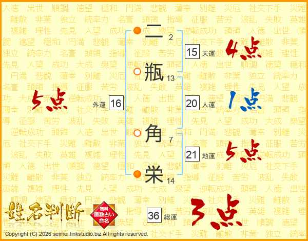 二瓶角栄さんの外運は16画の5点!