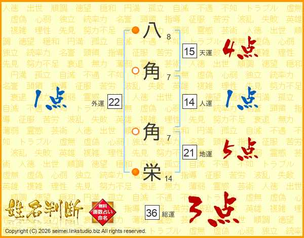 八角角栄さんの総運は36画の3点!