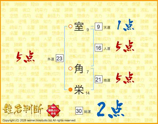 室(9画) 角(7画)栄(14画)