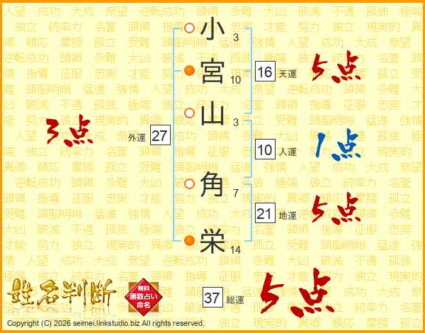 小(3画)宮(10画)山(3画) 角(7画)栄(14画)