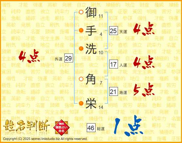 御手洗角栄さんの天運は25画の4点!