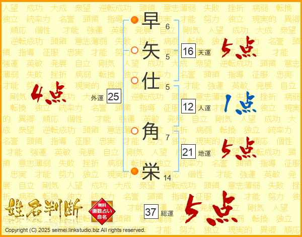 早(6画)矢(5画)仕(5画) 角(7画)栄(14画)