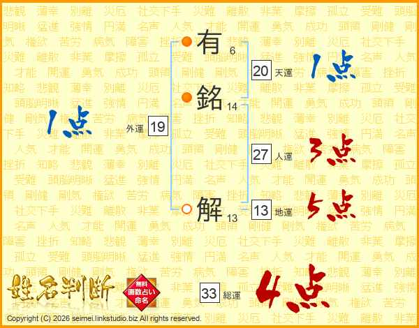 有銘解さんの総運は33画の4点!