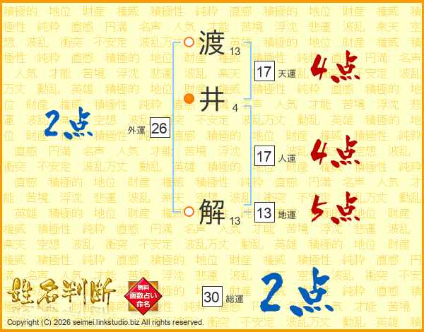 渡井解さんの天運は17画の4点!