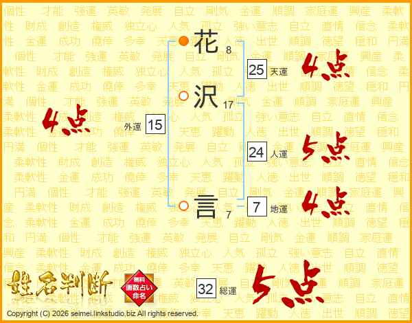 花沢言さんの総運は32画の5点!
