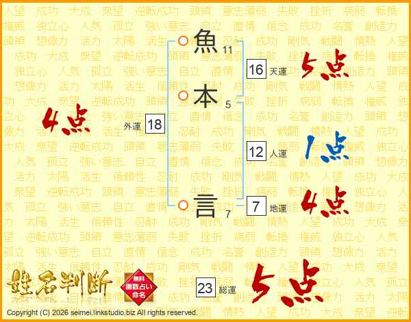 魚本言さんの総運は23画の5点!