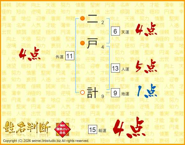 二戸計さんの総運は15画の4点!