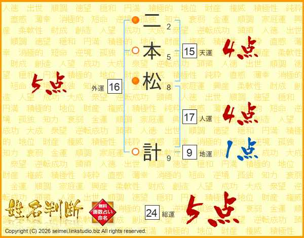 二本松計さんの総運は24画の5点!