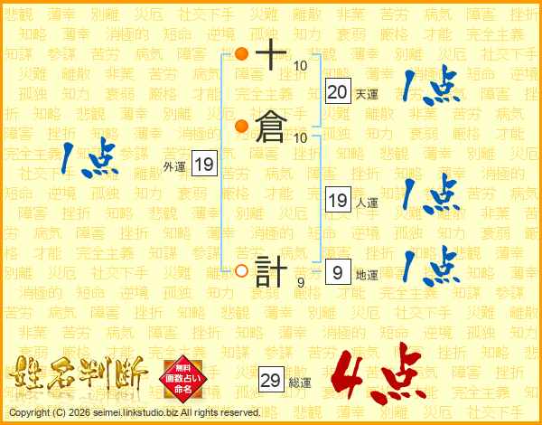 十倉計さんの総運は29画の4点!