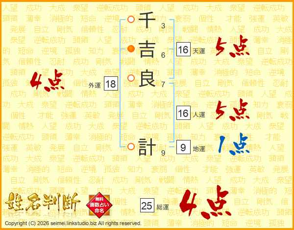 千吉良計さんの総運は25画の4点!