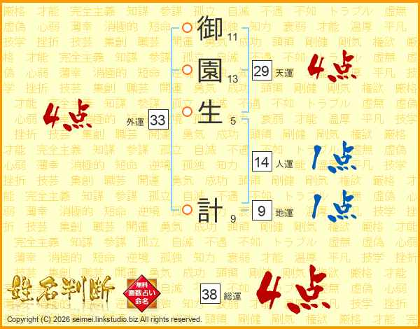 御園生計さんの総運は38画の4点!