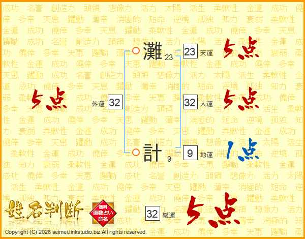 灘計さんの総運は32画の5点!