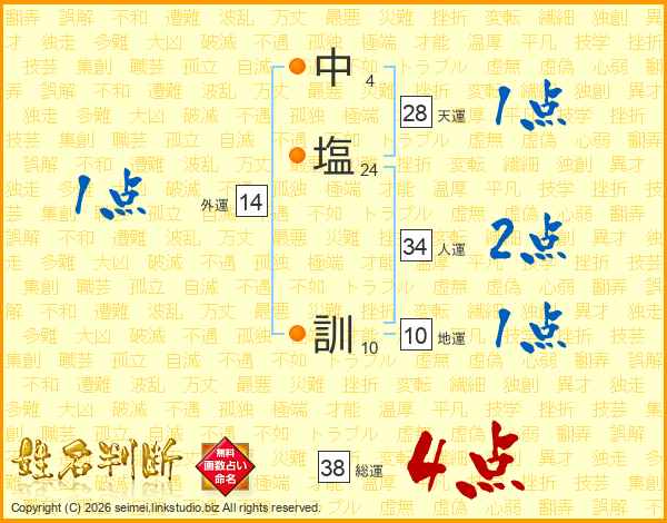 中塩訓さんの総運は38画の4点!