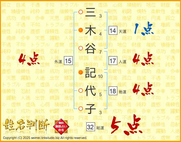 三(3画)木(4画)谷(7画) 記(10画)代(5画)子(3画)
