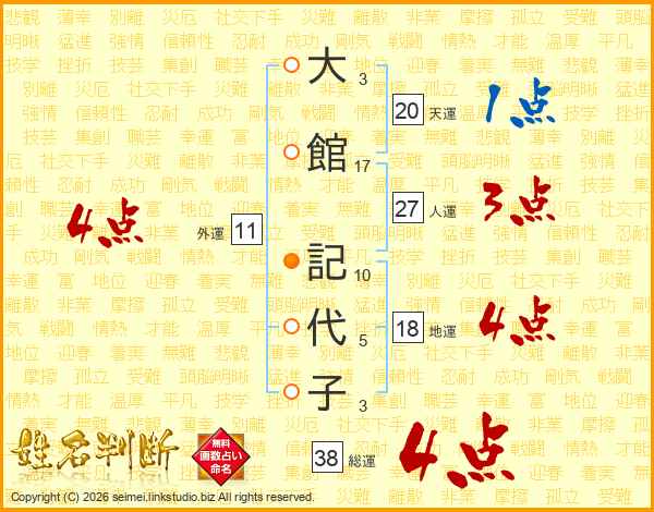 大館記代子さんの総運は38画の4点!