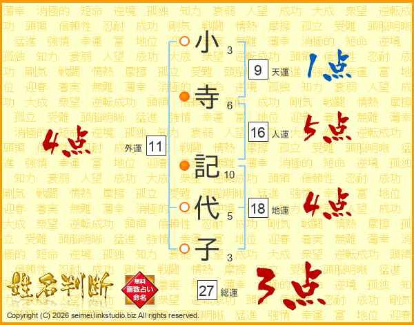 小寺記代子さんの総運は27画の3点!