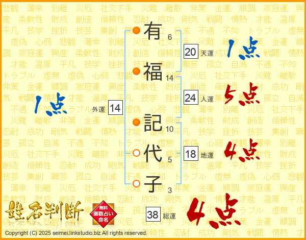 有福記代子さんの総運は38画の4点!