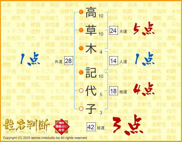 高(10画)草(10画)木(4画) 記(10画)代(5画)子(3画)