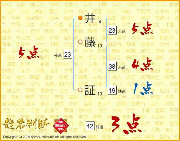 井藤証さんの天運は23画の5点!