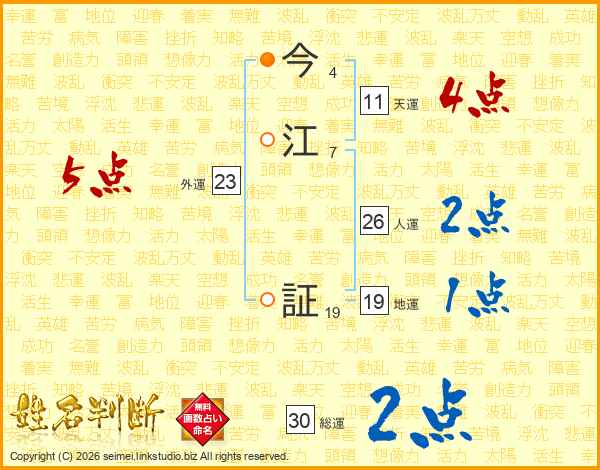 今江証さんの人運は26画の2点!