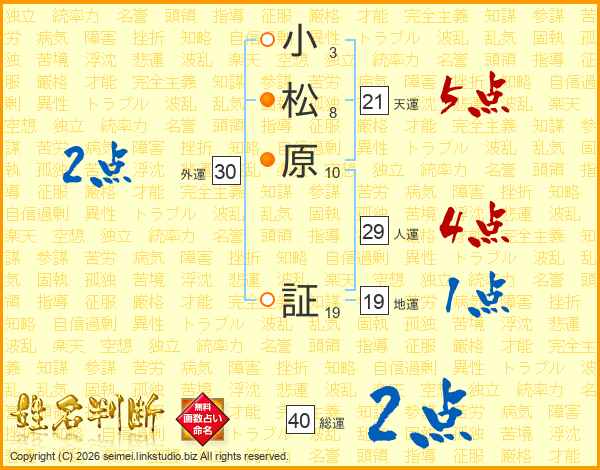 小松原証さんの天運は21画の5点!