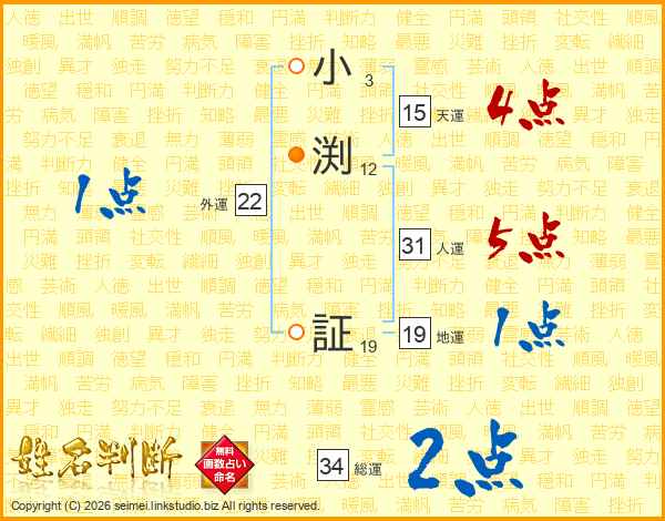 小渕証さんの総運は34画の2点!