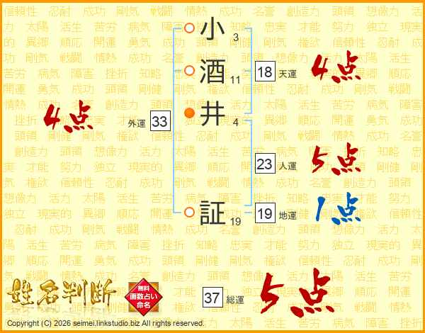 小酒井証さんの総運は37画の5点!