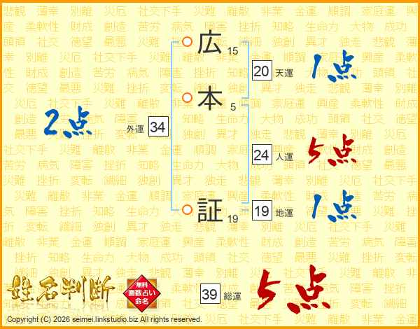 広本証さんの総運は39画の5点!