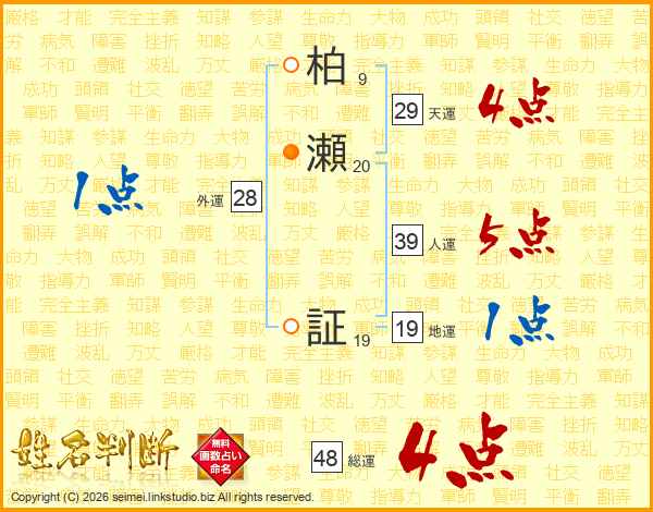 柏瀬証さんの人運は39画の5点!