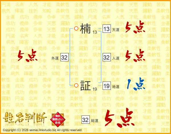 楠証さんの外運は32画の5点!