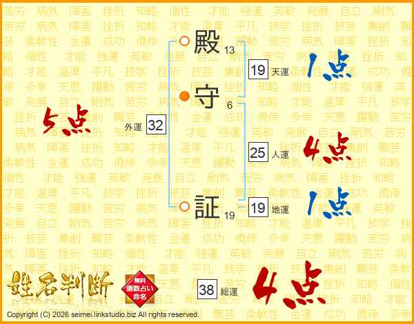 殿守証さんの総運は38画の4点!